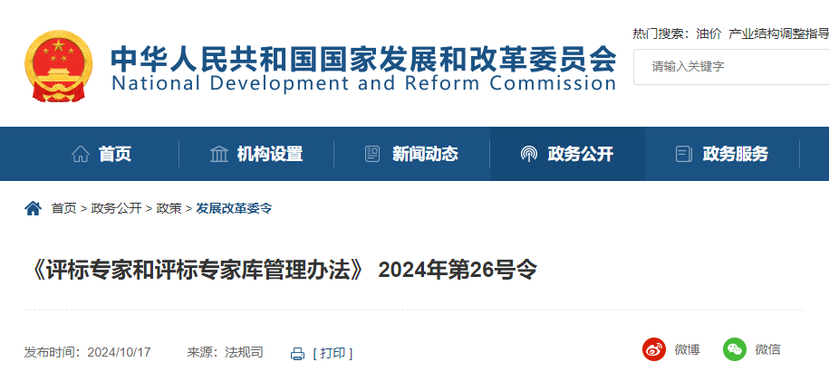 ● 国家发展改革委修订印发了《评标专家和评标专家库管理办法》,将于2025年1月1日起实施。