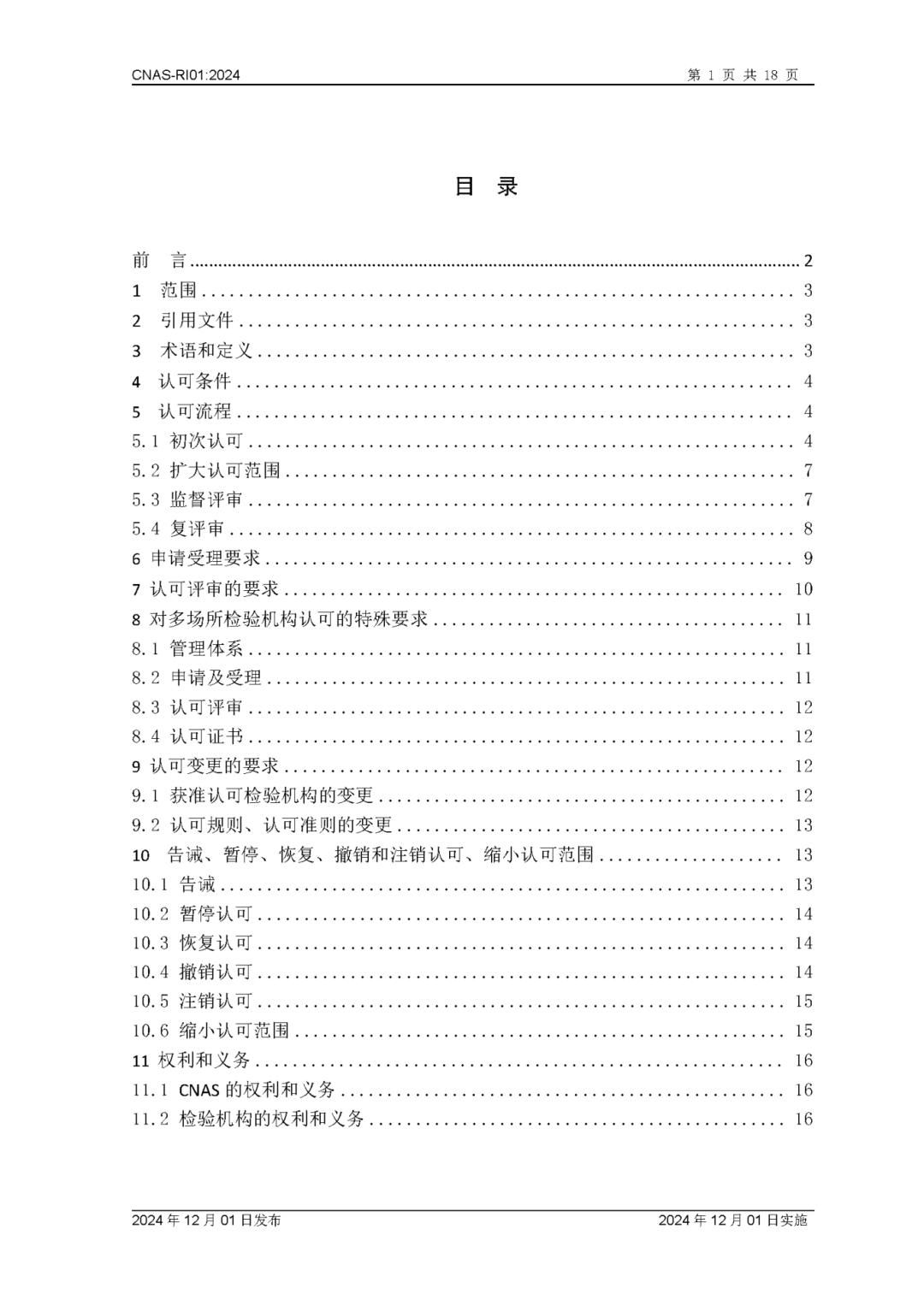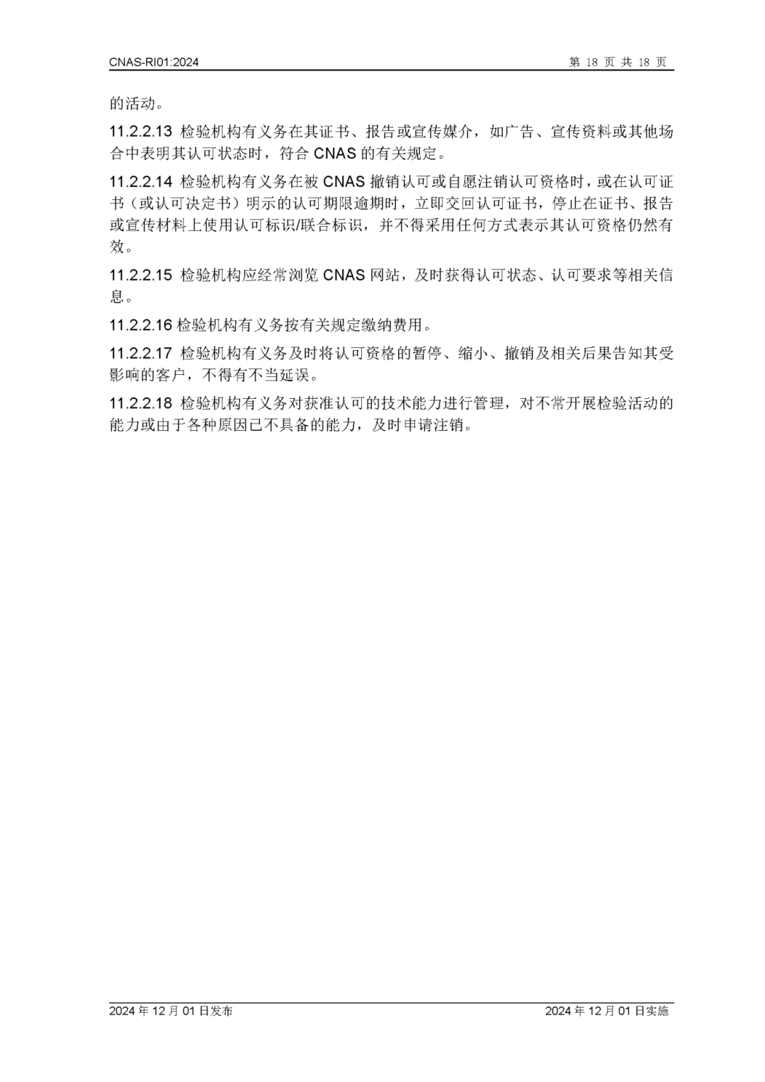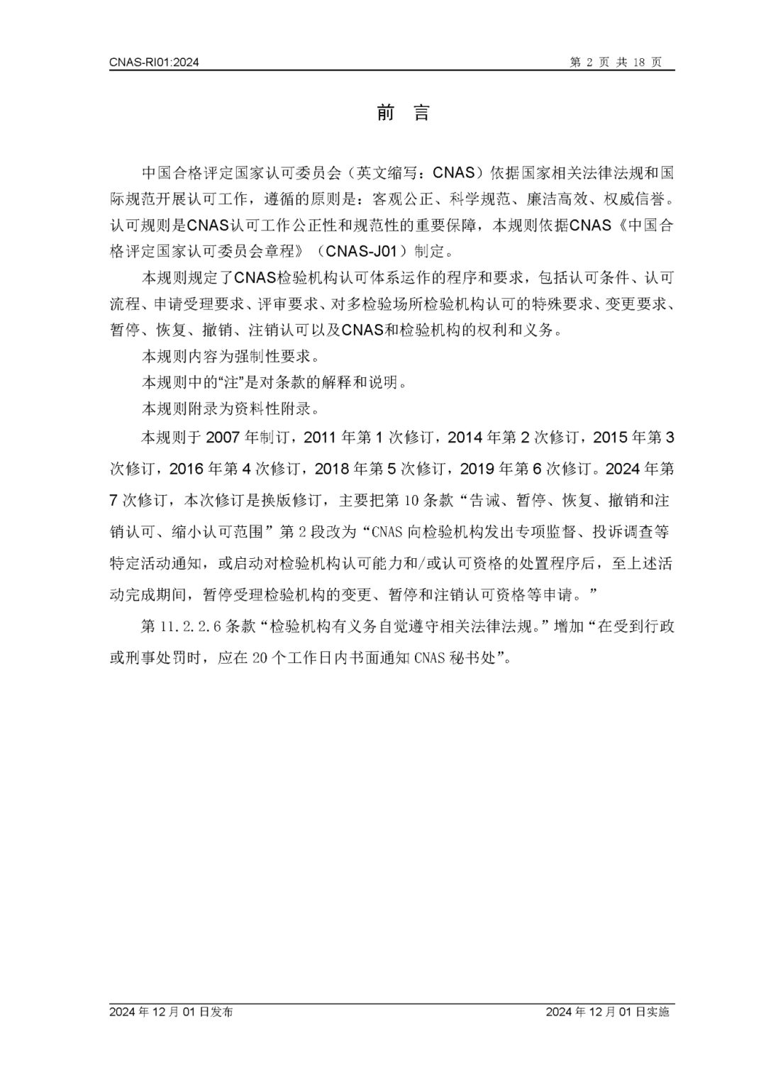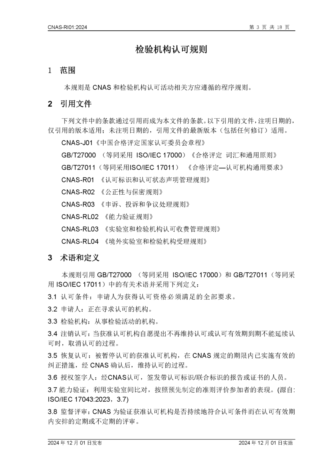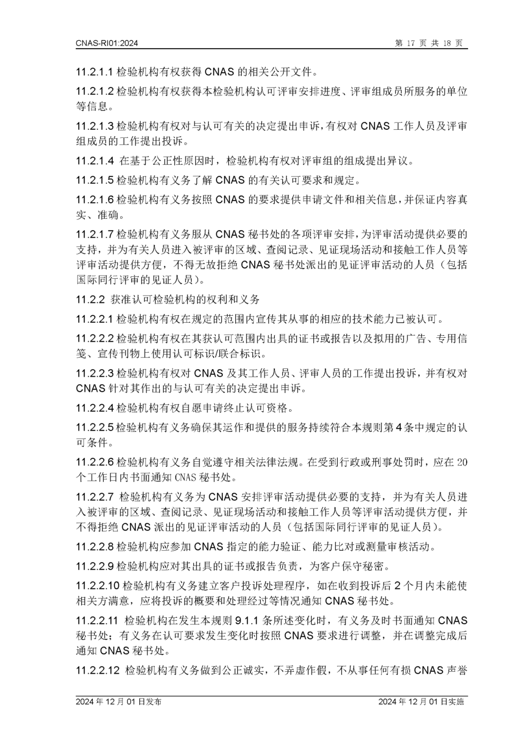 为更好地服务于检验机构认可业务工作,中国合格评定国家认可委员会(CNAS)秘书处已完成CNAS—RI01:2024《检验机构认可规则》的修订换版工作。CNAS—RI01:2024《检验机构认可规则》于2024年12月1日发布,2024年12月1日实施。上述文件可在CNAS网站(https://www.cnas.org.cn/)“认可规范/检验机构认可/认可规则”栏目中查找下载。附件:CNAS—RI01:2024《检验机构认可规则》