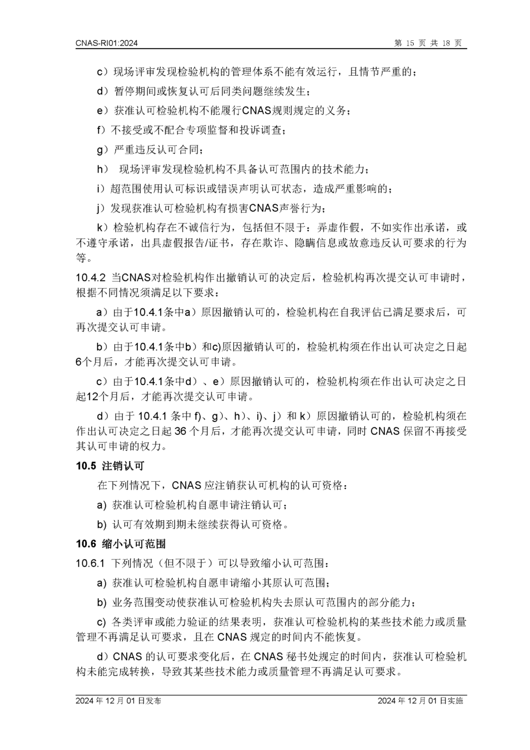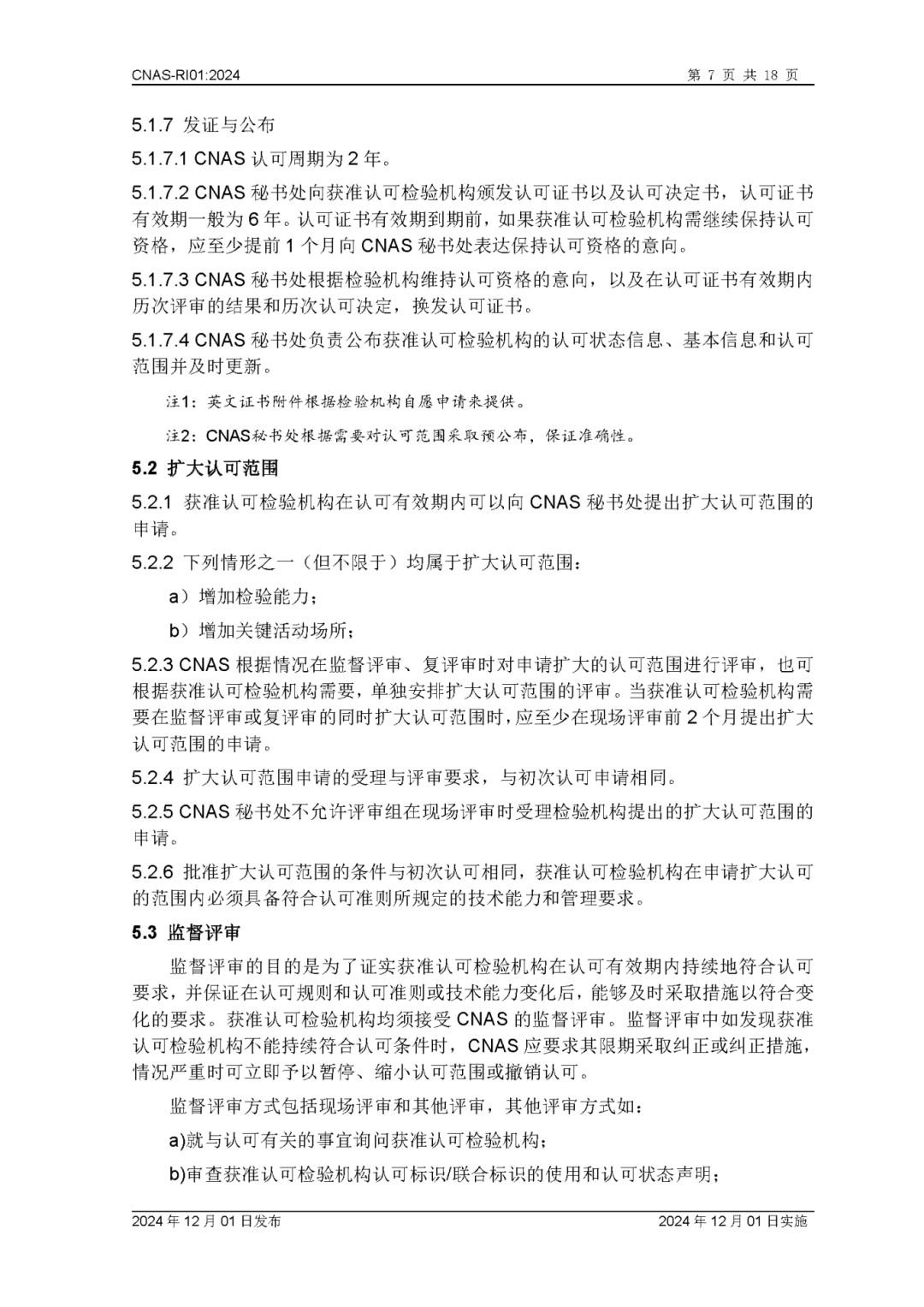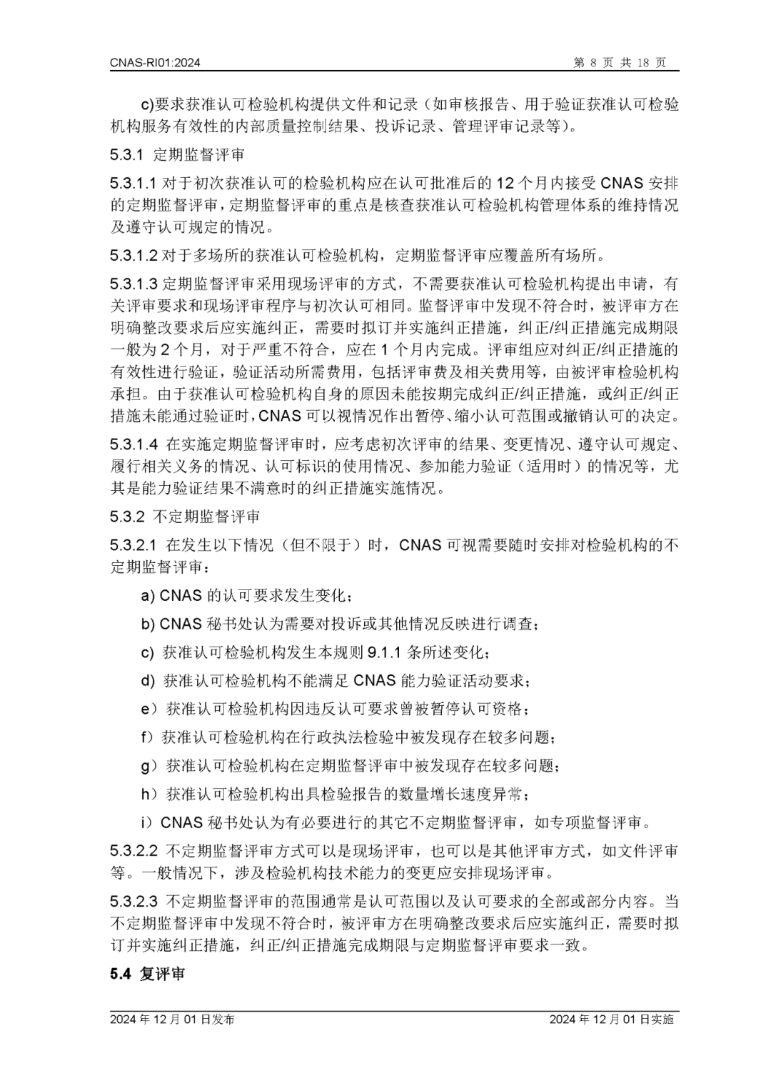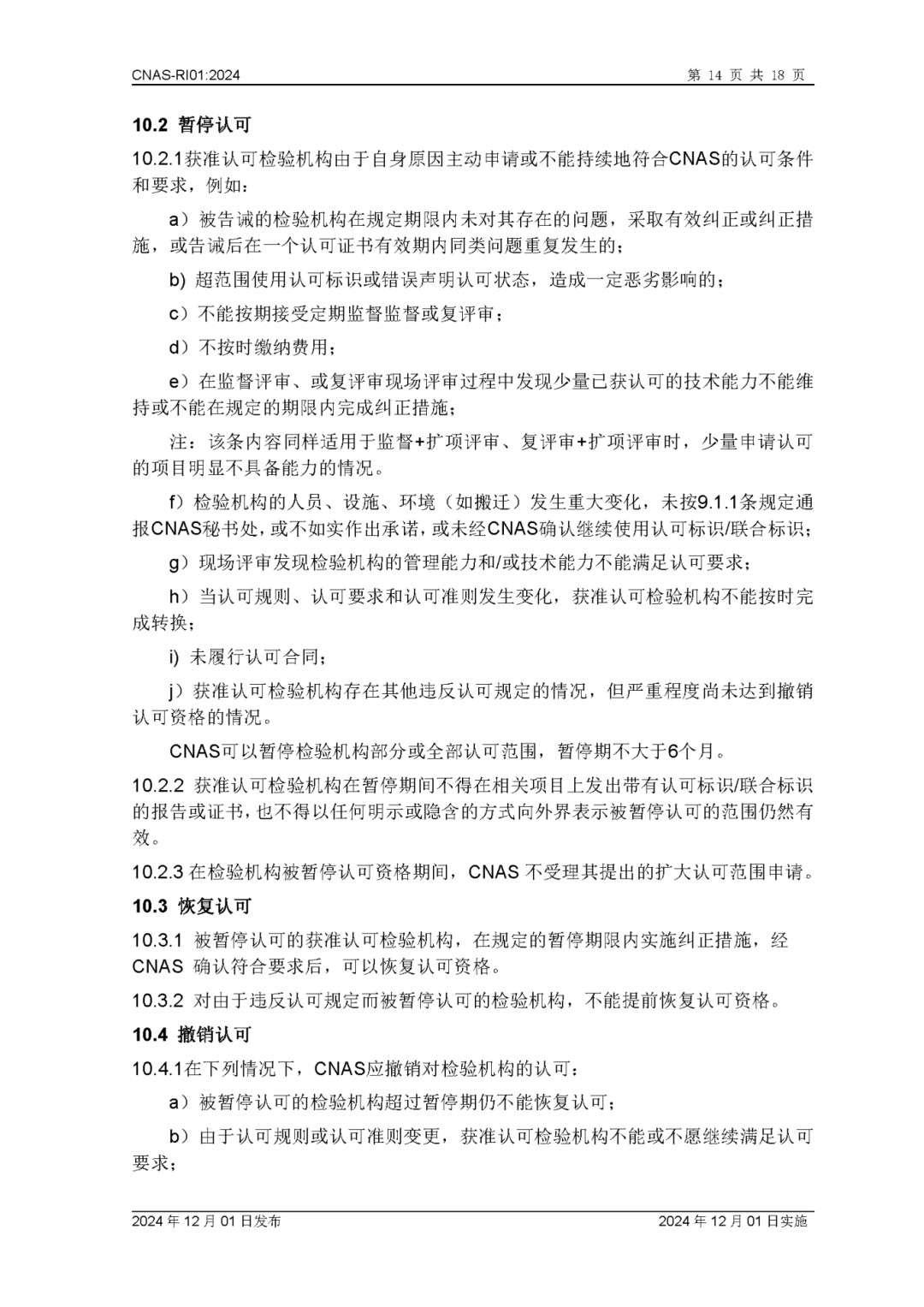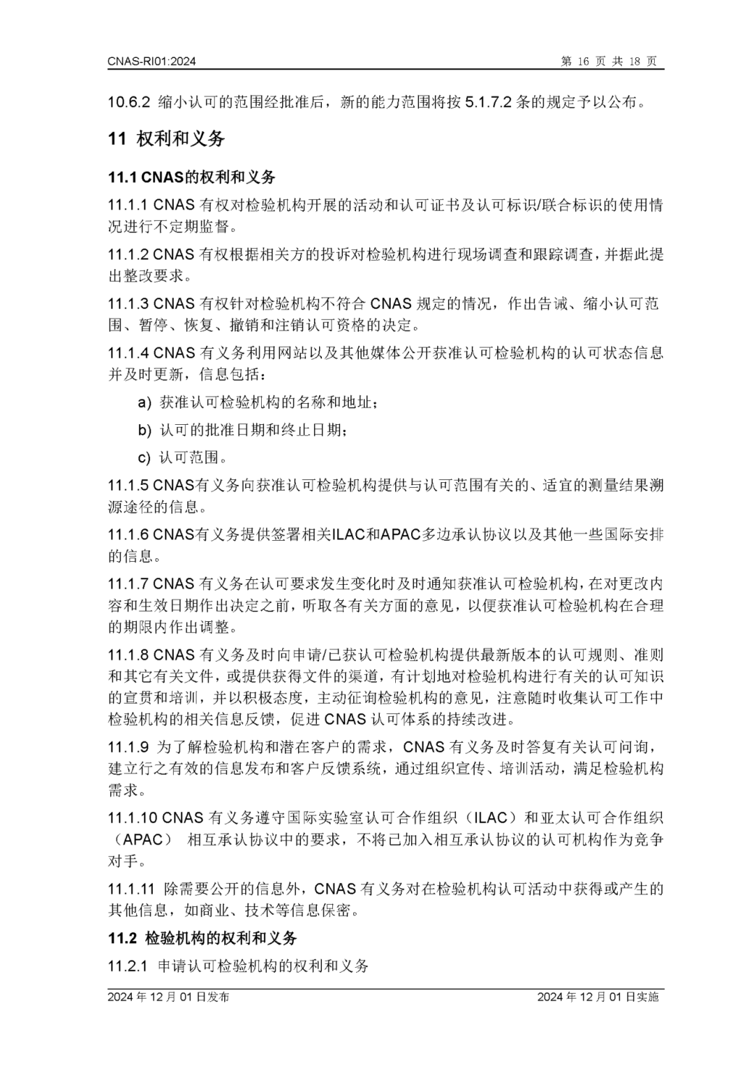 为更好地服务于检验机构认可业务工作,中国合格评定国家认可委员会(CNAS)秘书处已完成CNAS—RI01:2024《检验机构认可规则》的修订换版工作。CNAS—RI01:2024《检验机构认可规则》于2024年12月1日发布,2024年12月1日实施。上述文件可在CNAS网站(https://www.cnas.org.cn/)“认可规范/检验机构认可/认可规则”栏目中查找下载。附件:CNAS—RI01:2024《检验机构认可规则》
