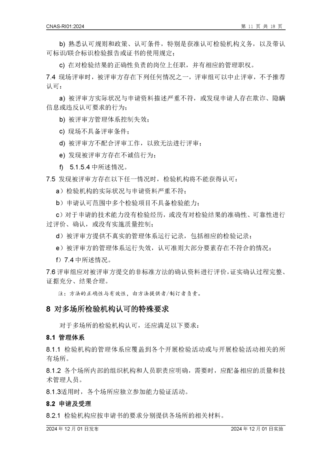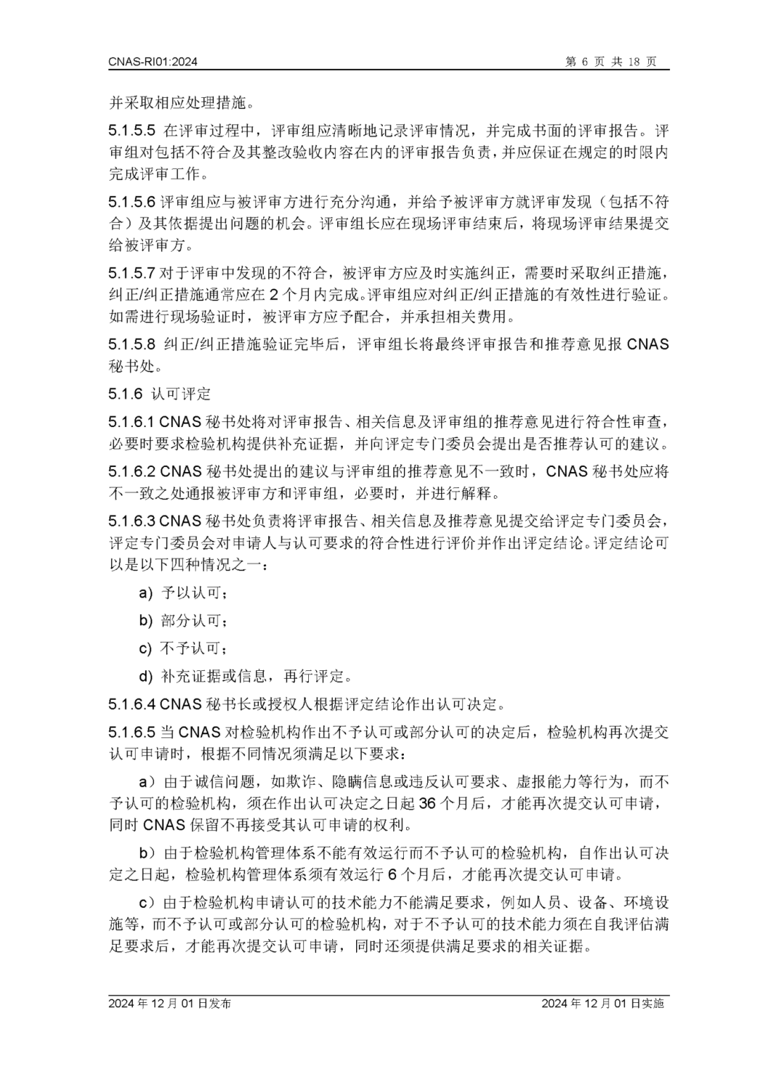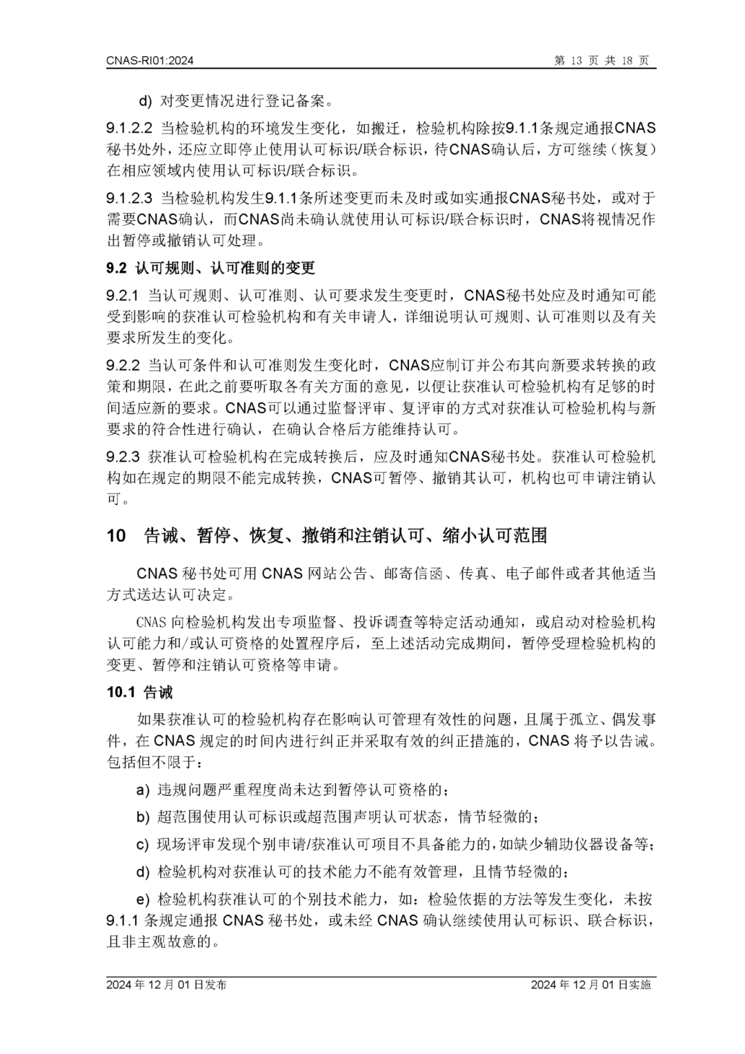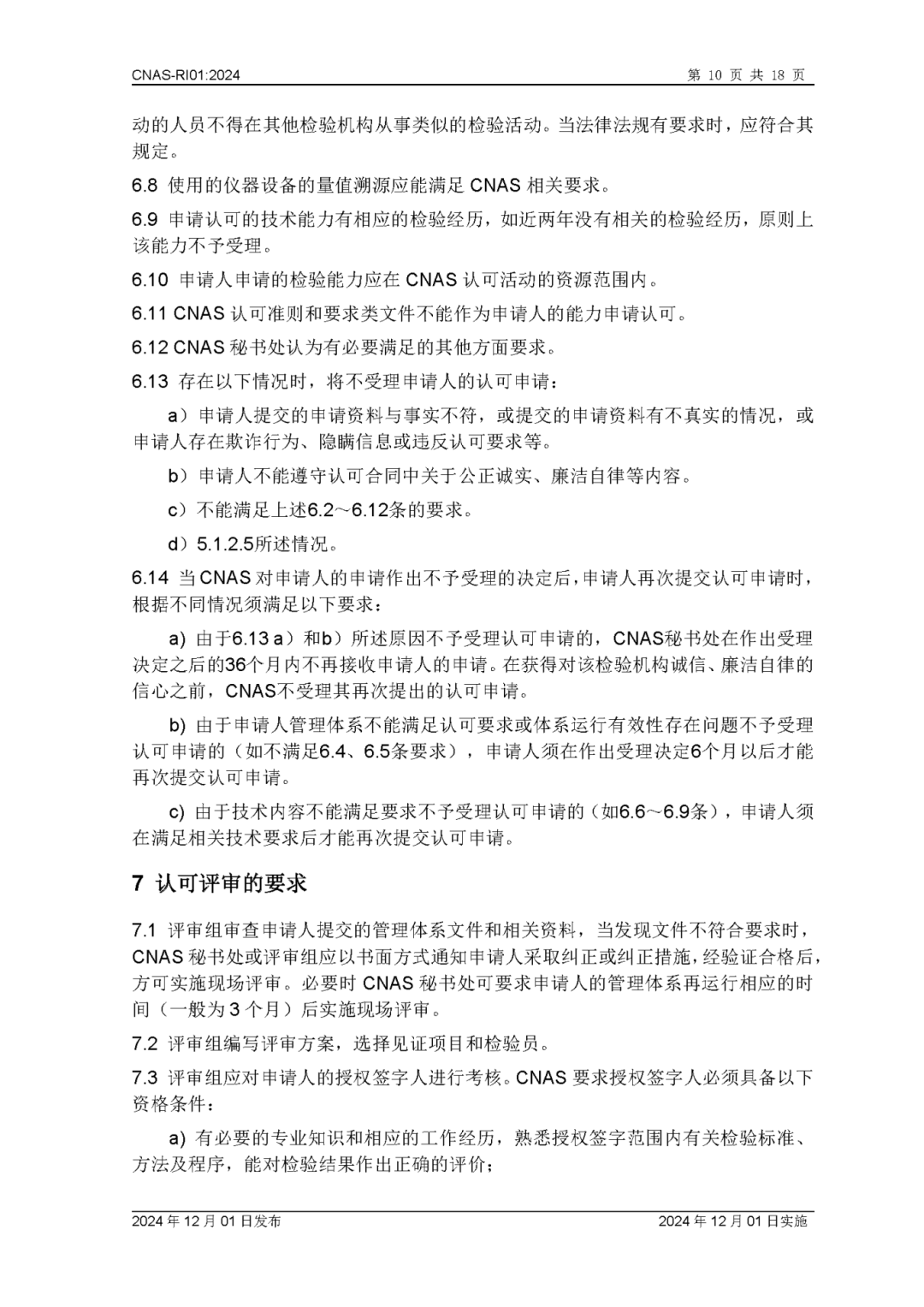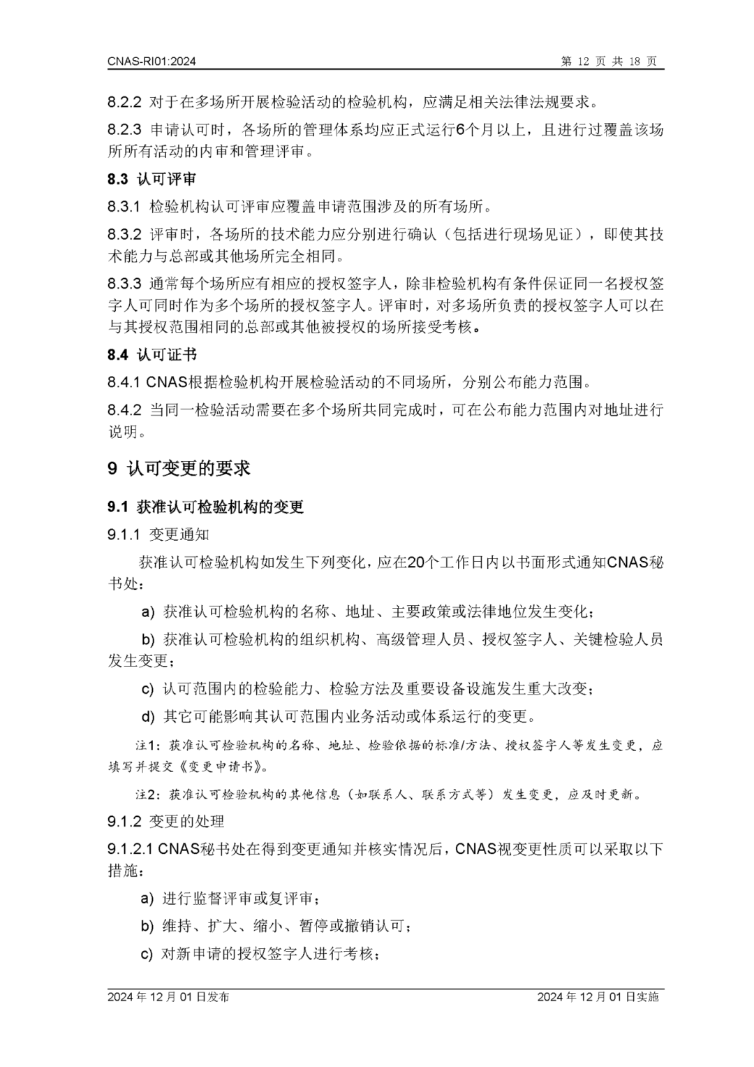 为更好地服务于检验机构认可业务工作,中国合格评定国家认可委员会(CNAS)秘书处已完成CNAS—RI01:2024《检验机构认可规则》的修订换版工作。CNAS—RI01:2024《检验机构认可规则》于2024年12月1日发布,2024年12月1日实施。上述文件可在CNAS网站(https://www.cnas.org.cn/)“认可规范/检验机构认可/认可规则”栏目中查找下载。附件:CNAS—RI01:2024《检验机构认可规则》